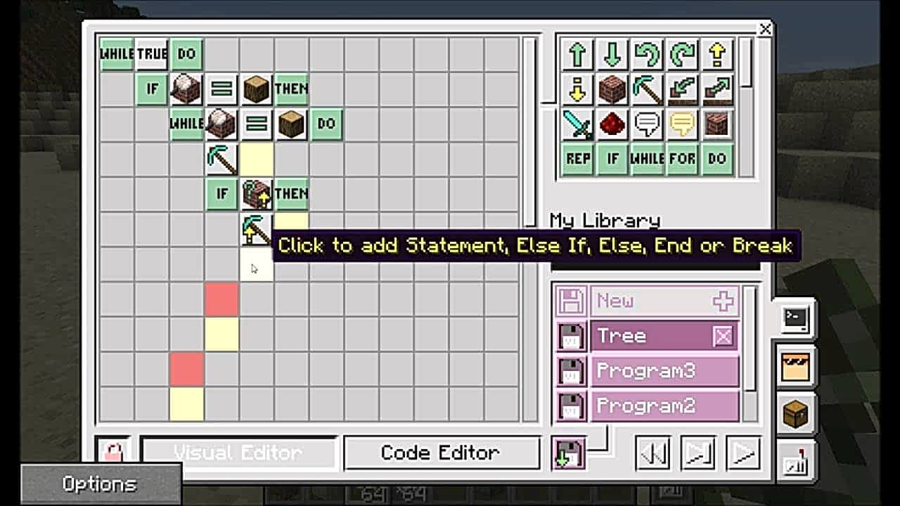 Робот может свободно перемещаться в пространстве, разрушать или ставить блоки, проверять наличие блоков вокруг Pin-Up создавать существ и прочее.