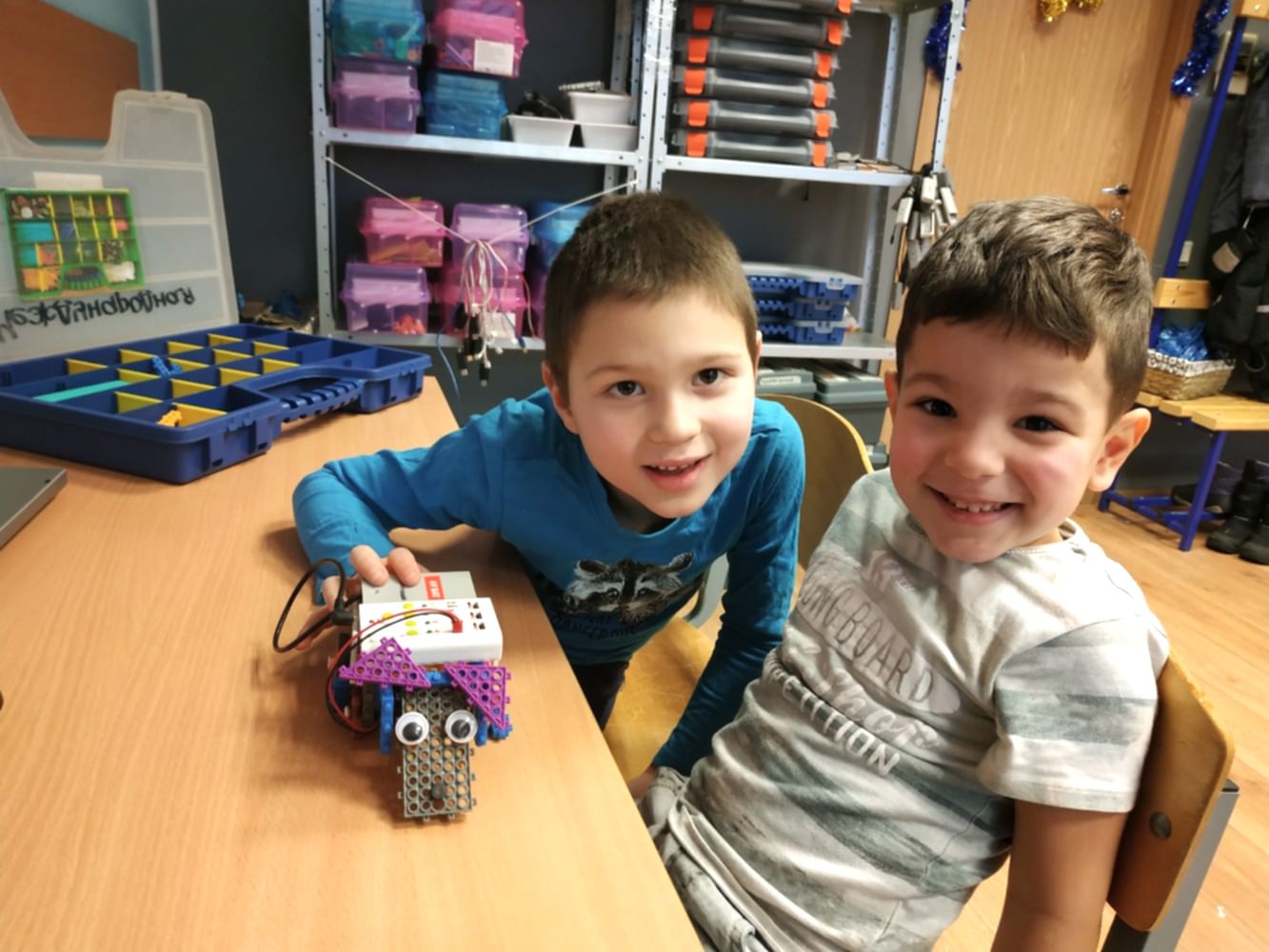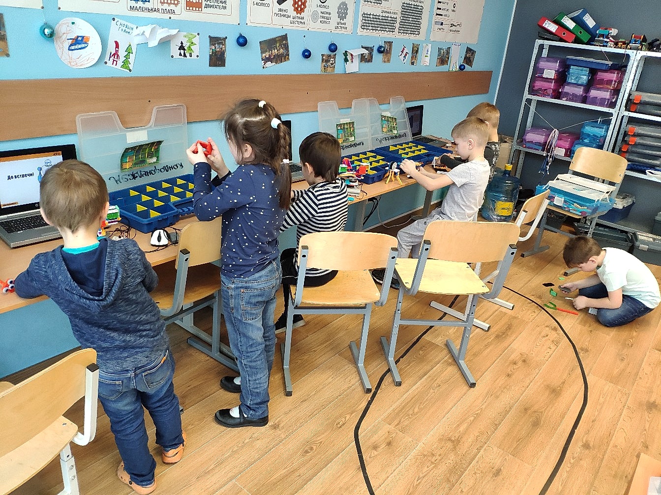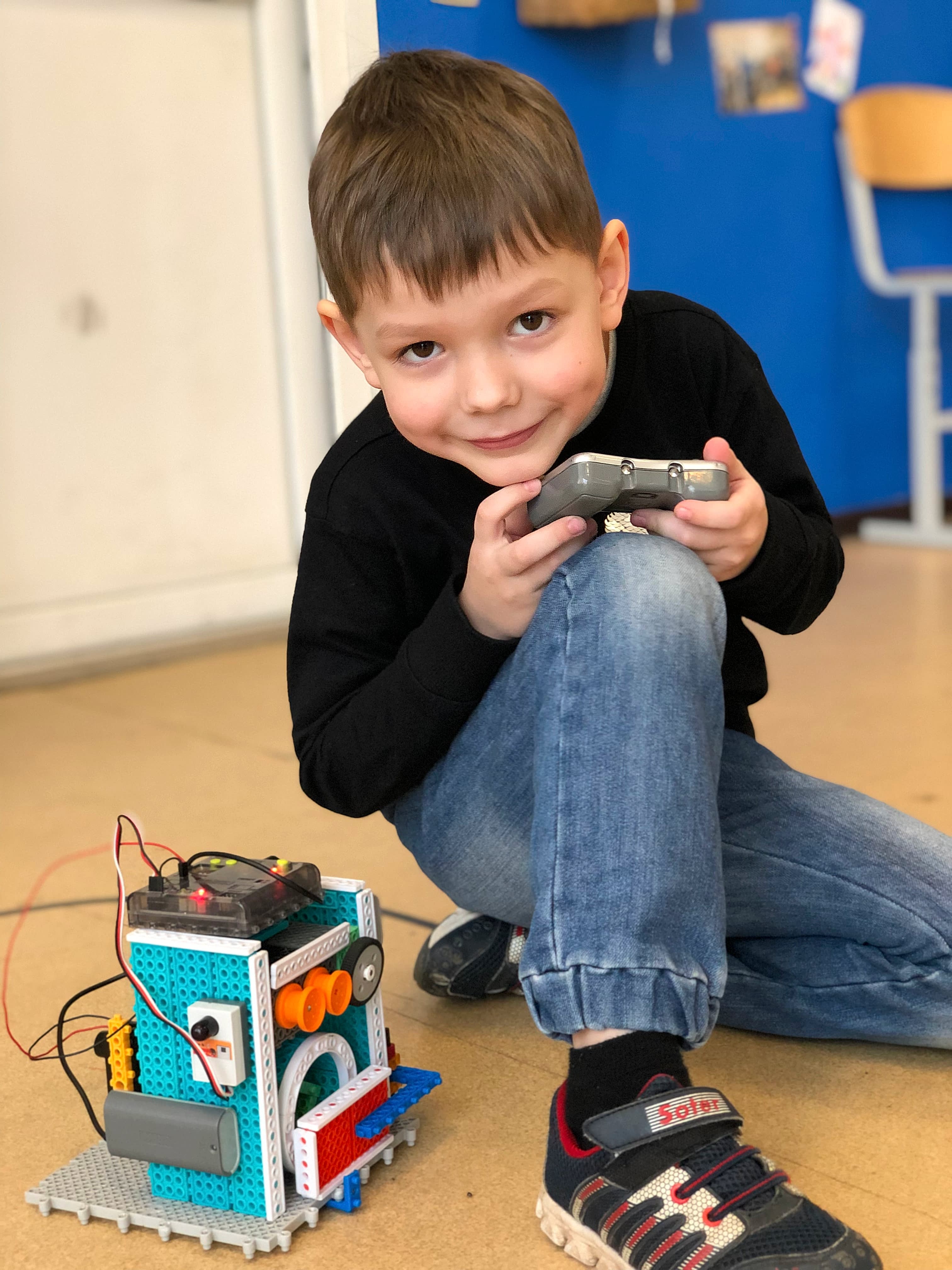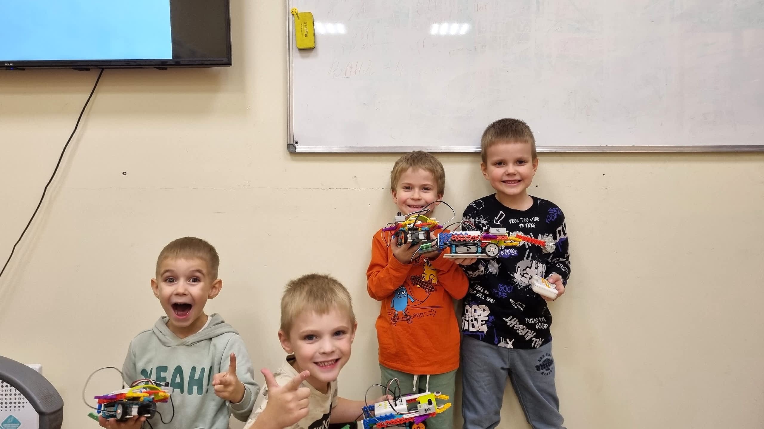 Ознакомление детей с основами конструирования, моделирования, принципов робототехники. Основы проектной деятельности. Ребята учат Pin-Up деталей, элементарных электронных модулей, например датчик ПДУ, двигатель, материнская плата… Также учатся следовать инструкции, подключать электронику.