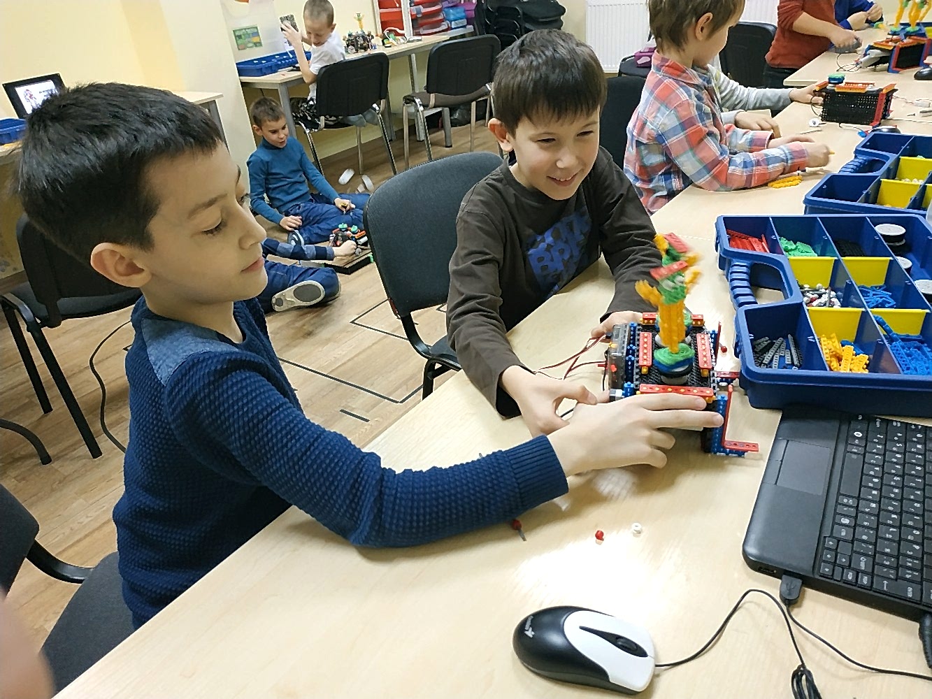 Знакомство с базовыми понятиями моделирования и робототехники, ознакомление с основами мехатроники. Дети изучают различные механизмы, устройство электронных модулей, таких как датчики, двигатели, основы Pin-Up Также ребята учатся программировать в специальной визуальной среде “MRT”.